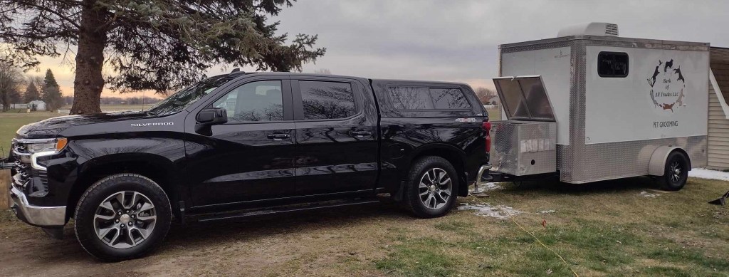 My grooming trailer is equipt with a top of the line forced air dryer that is designed to minimizes motor noise. I utilize a “Happy Hoodie” on every dog. This minimizes the air flow noise of the drying process, and keeps the breeze out of their ears. Of course, forced air is many times not tolerated around the face (I never use forced air directly AT the face!), and some behavior or health issues may also limit its use around other sensitive areas. In these cases, I use more passive fans that dry as I work on other steps of the groom, such as brushing, nail trims and sanitary trim. *In rare cases, I may deem a complete drying to be a danger to the pet. I reserve the right to do what is best for their safety in those cases*